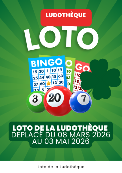 Le loto de la ludothèque qui était prévu le 8 mars et reporté au 3 mai 2026