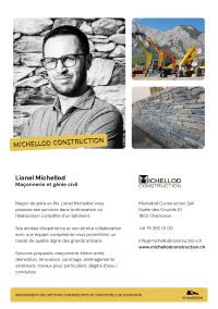 AdresseMichellod Construction SàrlRuelle des Courtils 101955Chamoson